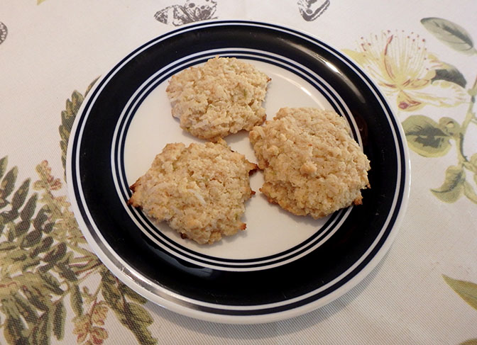 Stir all ingredients together until well blended. Drop by spoonfuls onto parchment paper lined pan. Bake at 350 degrees Fahrenheit for 10-14 minutes. If flatter cookies are desired you can flatten them before baking.