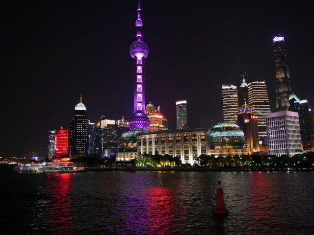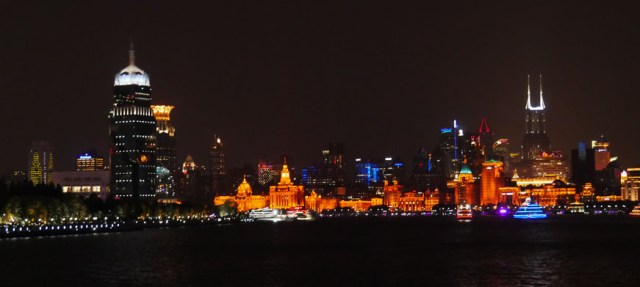Across the river the more modern Pudong district has lots of skyscrapers, including Shanghai’s tallest buildings and the Oriental Pearl Tower, whose unique design is a landmark of the area. Buildings on that side of the river light up in all sorts of colors and patterns, some of which change frequently throughout the evening including the lights on the Oriental Pearl Tower.
