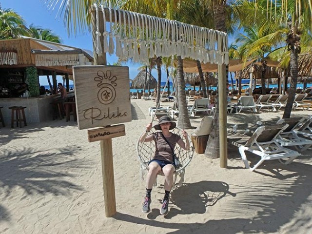 Then we went to Mambo Beach, apparently the most popular beach on the island. It reminded me of a cruise ship port. There were lots and lots of shops to pass through before getting to any actual beach. It was a nice beach with lots of beach chairs, and also lots of people so not so good for quiet and seclusion. It had a breakwater protecting the swimming area from any rough waves. Driving out from the beach it looked like there was a trail along the beach to less populated areas of it.