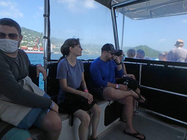 We just stayed onboard until time to meet for our excursion rather than getting off earlier to explore. There’s just shops there anyway and the snorkel excursion was already enough time for me to spend in the sun. I was happy to see that the blurbs on their website about St. Thomas excursions mentioned that only UV blocking swimsuits or reef safe sunscreen would be allowed to protect the coral. Caribbean coral needs all the protection it can get as coral worldwide is in trouble with Caribbean coral already 80% gone. Along with warmer oceans, pollution, overfishing, human caused breakage, and storms, chemical sunscreens also damage the coral and kill their larvae. It just takes the equivalent of one drop in an Olympic sized pool to cause harm so imagine how much devastation many bodies covered in chemical sunscreen brings. Unfortunately nothing was mentioned about it on the ship nor posted in the port, nor mentioned on the excursion. While we waited for the boat some people slathered themselves in chemical poison without repercussion, probably without knowing they were contributing to the demise of the coral they were so excited to go see.