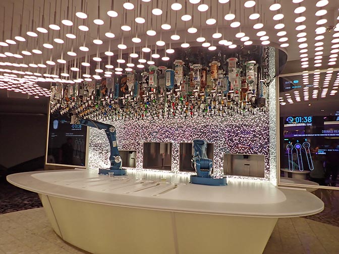 Our muster station on Wonder of the Seas was at the Bionic Bar, which has robot bartenders