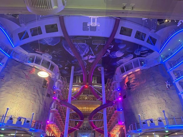 There’s also less common things like rock climbing walls, ice skating rink, 10-deck dry slides, and the flowriders. These were not all open all day during our sailing, just when they had crew manning them, and the skating rink didn’t have any public sessions where passengers could skate like the last Royal ship I was on did. The crew seemed to move from one venue to another, closing one thing to open the next. Since the ship had significantly less than half the number of passengers it can hold there were probably less crew available to man those sorts of things than there would be when the ship sails full. Things were rarely ever crowded though so that was nice.