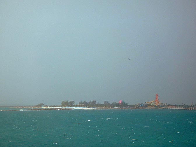 CocoCay from Symphony of the Seas passing by on a stormy day