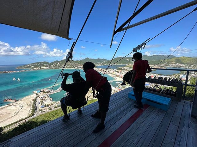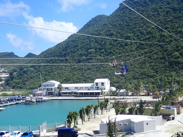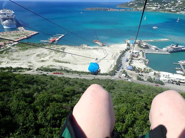 Scanning through shore excursions offered and other info while looking for something to do in Saint Martin, I came across an excursion to Pelican Peak Zip Line. On a previous visit we’d tried to get to Rainforest Adventures on the French side of the island, but none of the taxis from the stand at the port wanted to go there. Somebody suggested we might find a taxi in town, but besides the fact that we were the 4th of 4 ships arriving that day and space in that zipline went by first come first serve, we figured considering how hard it was to find a ride to get there we might not be able to get one back, and probably would be too late to get on the zip line anyway so we did something else that day instead.