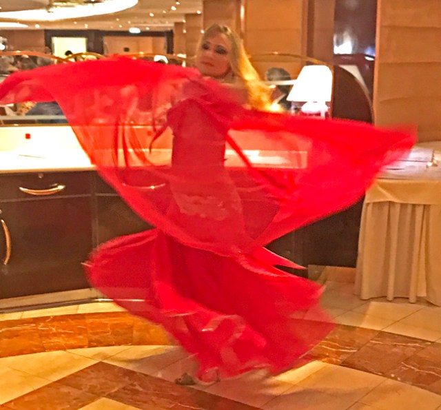 Themed dinners with like themed late night parties interspersed the cruise to liven things up a bit and have something besides elegant nights to dress up for. This cruise had a carnival night and a white night. Not that many people dressed up for them at dinner and we never went to any deck parties so I have no idea how those turned out. I can’t imagine too big of an attendance though since there never seemed to be many people out and about anywhere when venturing out of the cabin late at night. Having traveled through Europe for 10 days without a lot of luggage before boarding the ship, we barely had anything suitable to wear for formal nights and nothing for any sort of one-use costume.