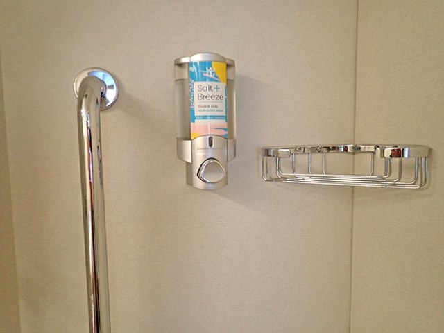 The bathroom was a pretty standard cruise ship bathroom. The shower had the usual clothesline you can pull across like we thought all cruise ships had until coming across one that didn’t. It looks like they’ve cut back on the toiletries though.
