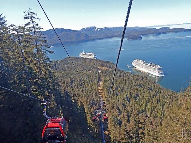 The first port stop was at Icy Strait Point, a place none of us had been to before. We got lucky and had a beautiful day, which is really nice at that port since the highlight is a gondola up to the top of a mountain. There’s also a really awesome zipline down, or you can go back down the gondola. With or without the zipline you get unlimited rides on the gondola, which is great since most places you just get one ride up and back. After we got back to our room on the ship my mom and I saw whales really close by right out our cabin window, which really brightened up her day after a bad reboarding experience.