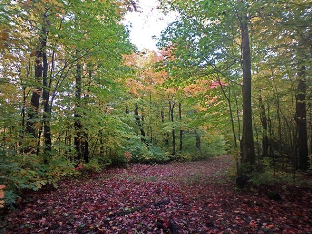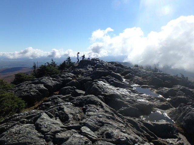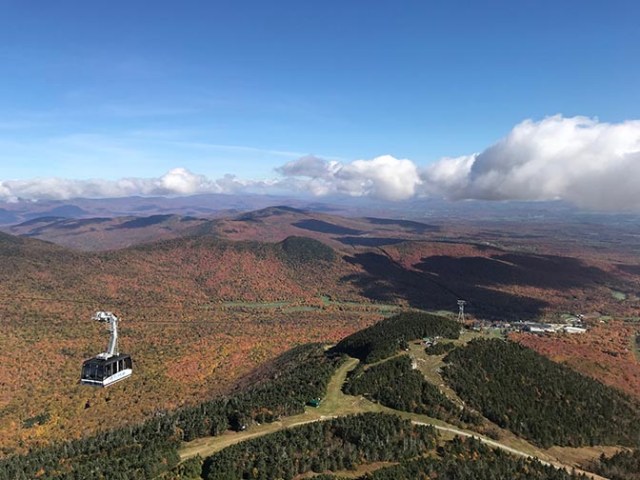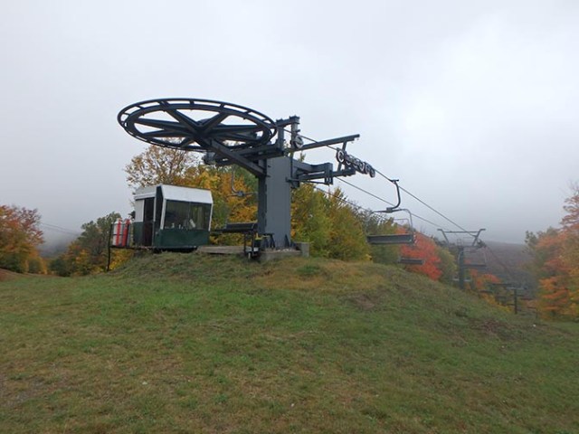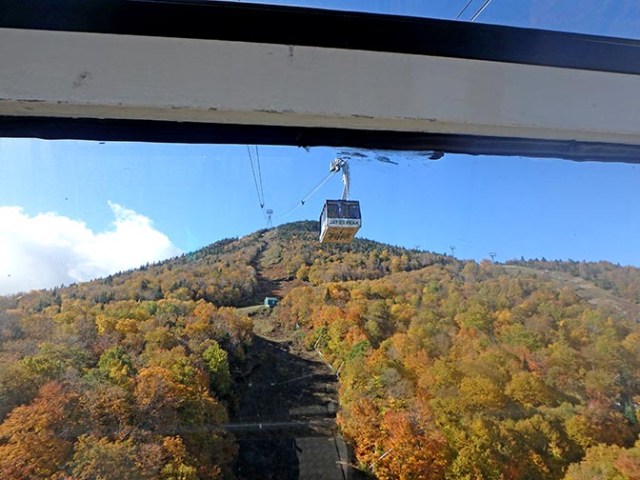 There is quite a network of trails going up the side of Jay Peak between Jay Peak Resort in Vermont and the top of the mountain. When the tram is running it goes all the way up to the top. Some of the trails also go to the top so the upper trails don’t necessarily have to be reached on foot when the tram is running. There are ski lifts all over the mountain too, but none of them go all the way up like the tram does. None of them were open in the off-season when we were there either. Though some of them are quite steep, there are trails under the lifts so you can hike to the tops of many of the lifts or go up one trail and then find lots of others while you are already up on the mountain.