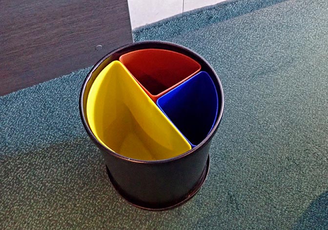 stateroom garbage can has bins to separate recycling on MSC Meraviglia