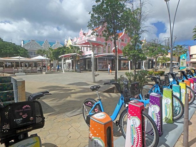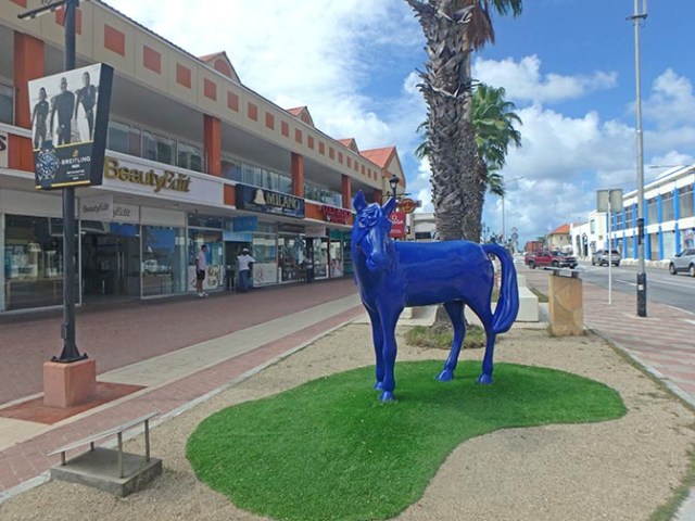 After we finished our snorkel excursion at our port stop in Oranjestad, Aruba on Celebrity Constellation we had enough time left to explore a bit. We went to shore hoping to find an island tour as we had on Bonaire after finishing a snorkel excursion there. Unfortunately there were no waiting taxis at the port. One lone brightly colored open-sided van/bus sat empty, but the driver said an island tour would cost $100 each, a far cry from the $25 each we’d paid for the taxi tour in Bonaire. We declined at that price. He said he planned to head to a distant beach soon to pick people up who’d gone earlier and could take us there for $25 each, but besides already having seen that area from the water on the snorkel boat, getting left on a beach near to the end of a port stop without a known means of returning to the ship would not have been an inviting proposal even if we were dressed for beachgoing, which we weren’t.