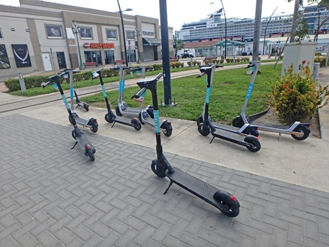 Just outside the port we saw scooters for rent.