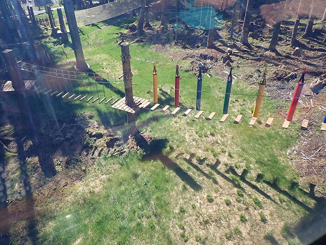 view of Tree Top Adventure ropes course from the green gondola