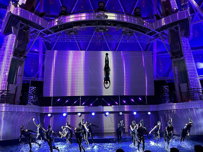 aerialists are a big part of the AquaTheater show on Wonder of the Seas