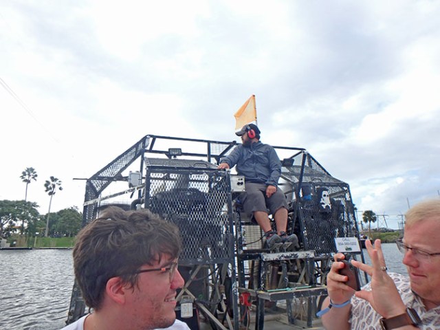 The driver said it was about a 40-minute drive to the park in the Everglades where we were going assuming we didn’t hit congested traffic. I didn’t time it, but the traffic didn’t seem bad. The bus eventually turned off the freeway at an exit marked as Alligator Alley. The park had a fleet of airboats, each with a different name. Since the only one I can remember is Hog Wild that was apparently the most memorable name, at least for me.