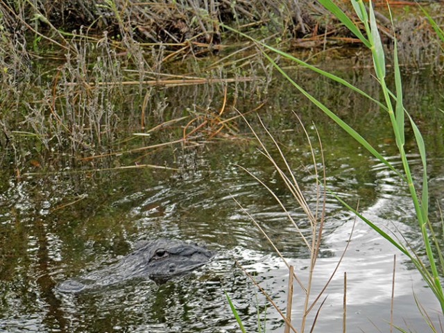 Our boat driver found an alligator and stopped near it so everyone could see it. He said there are some alligators they see often enough to have named them and this was one of them. It was not afraid of the boat at all, instead it swam up closer to people watch. I guess that alligator liked watching people as much as the people liked watching it.