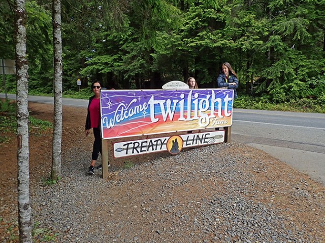 On the way to Rialto Beach we passed through the town of Forks, which as all Twilight fans would know is the home of the Twilight books. Bella’s trucks sit out in front of the Forks visitor center, both the book and movie versions. Before reaching town we passed the treaty line sign at a little resort called Three Rivers Resort, which has a restaurant and some little cabins. In addition to book locations around town, there’s also a collection of props from the movie which are free to see at the Rainforest Arts Center. Twilight locations in Forks are from the books as the movies were filmed elsewhere.