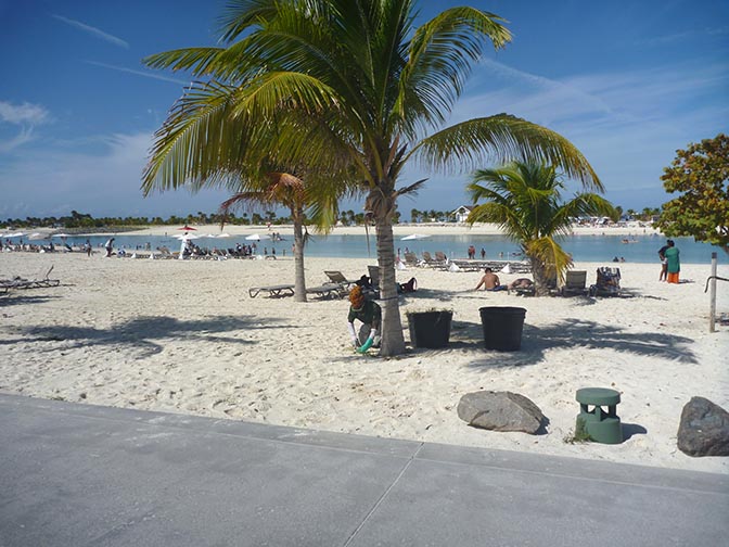 north and south beaches on either side of the lagoon between the two islands that make up Ocean Cay