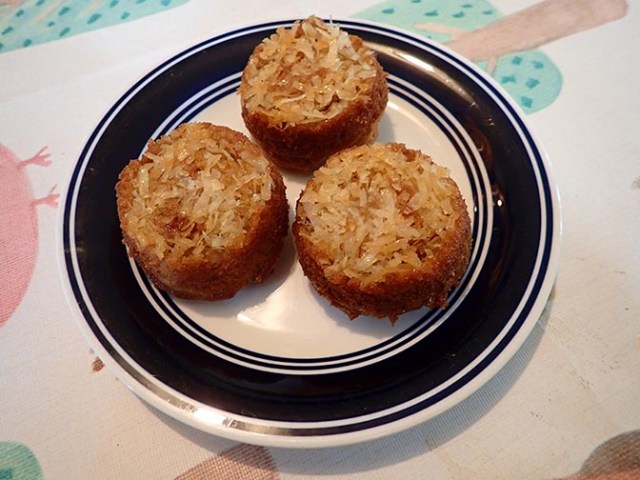 For coconut rum cakes add 1/2 cup coconut in the topping, stir 1/2 cup coconut into the dough, and use coconut milk and coconut rum. Use melted coconut oil instead of the liquid vegetable oil.