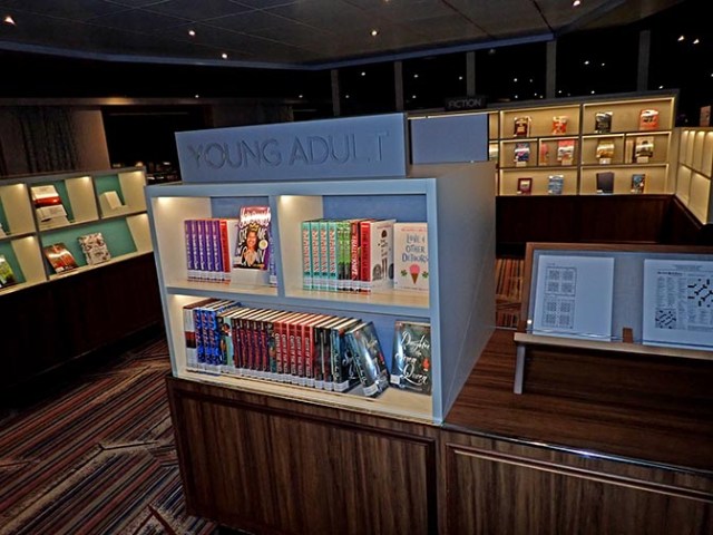 The Explorer’s Lounge library remodel gave it the fanciest library I’ve seen recently on a cruise ship. Long ago ships all had a whole library room with cabinets of books and games, but lately it’s usually just one or two cabinets full of random old books on most of the ships we’ve sailed on. Noordam now has a series of shelves with new books, each shelf a different section for things like mystery, fiction, and young adults among others. There’s even a book exchange shelf where people who still bring physical books when they travel can trade in books they’ve finished reading for something different. The library seemed quite popular both with the books to check out and the book exchange. We just used it as a place to hide ducks since we use the kindle app on our phones for reading. Unfortunately some passengers were not careful with the ship’s brand-new books, just dumping them haphazardly in random places or throwing them in the hallway outside their cabin door for the crew to find when they finished reading rather than returning them to the book drop as they were supposed to.