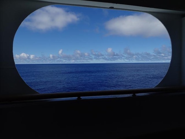 If you haven’t got a cabin with a window or balcony near the front of the ship, the large oval portholes on the promenade deck near the bow are a good place to watch for flying fish. I did one day see one from a window at the Lido buffet, which is at the back of the ship so it is possible to see them even if you aren’t at the front. On long ocean voyages flying fish are the most likely wildlife to see other than when near ports where birds are common and marine mammals might be spotted. We saw dolphins in Hawaii right near the ship, whales nearby in French Polynesia, and turtles and pelicans in Brisbane.