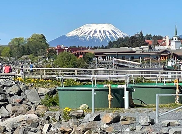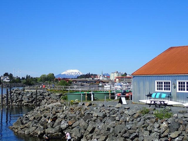 Views near the waterfront are dominated by Mount Edgecumbe, a formerly dormant volcano that has started to show signs of activity. It hasn’t erupted in centuries and doesn’t appear ready to do so anytime soon, but they are monitoring magma movement and gas.
