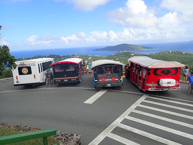 parking gets crowded where the tour busses go in Saint Thomas
