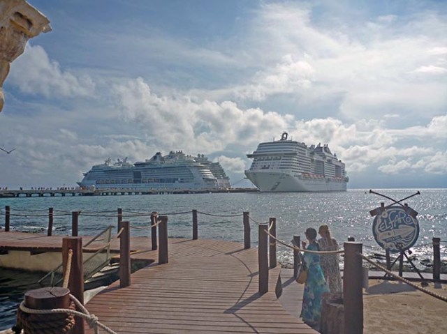When the ship stops at Ocean Cay there’s a special performance after dark – a light show on the island’s lighthouse. Our first stop there was just for a day and everyone was back onboard for the lighthouse show as the ship left soon after. The second time the ship overnighted there and they had two performances of the lighthouse show with a beach party lasting from the start of the first show to the end of the second about 2 hours later so people could watch either from the ship or from shore.