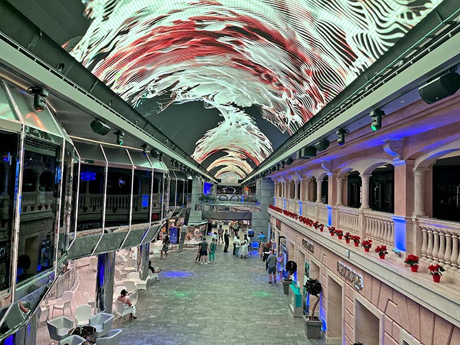 constantly changing colors and patterns in the seasons dome show on MSC Meraviglia