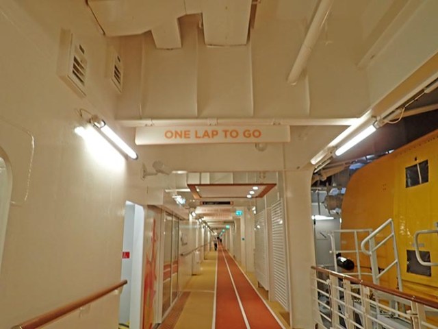 The best part of their fitness area isn’t even in the gym – it’s the outside promenade deck, which is set up like a track.
