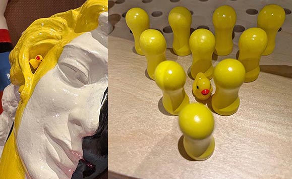 tiny duck found in a statue and hidden in a game on the Noordam