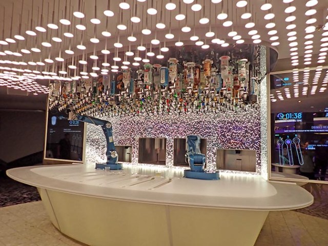 The Royal Promenade sprawls through a good portion of the center of deck 5. The theater and spa are at the front of that deck and the main dining room at the back. The Royal Promenade somewhat resembles a city street, but without the traffic. There is one car as part of the decor, but it doesn’t move so nobody has to worry about getting ran over. It’s an old car to go along with the Route 66 theme of the decor.