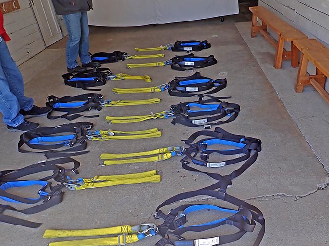 harnesses ready and waiting for people to go ziplining