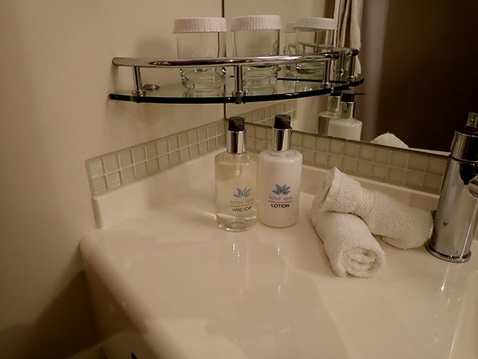 Princess standard cabins come with soap and hand lotion at the sink plus bath gel and combo shampoo/conditioner in the shower