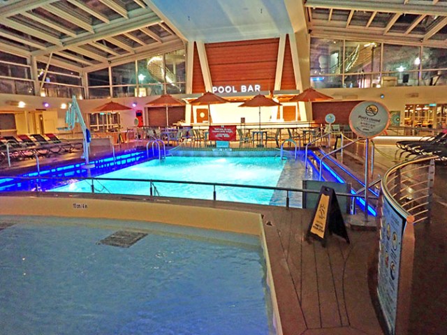 Some people prefer outside decks, which all the ships with solariums also have so it’s nice to have that choice. Quantum went one step further. Besides having the adults-only solarium and outside pool deck, it also had an indoor pool in an area similar to the solarium that was open to all ages. On a ship sailing to Alaska indoor pool areas are a really nice thing to have.