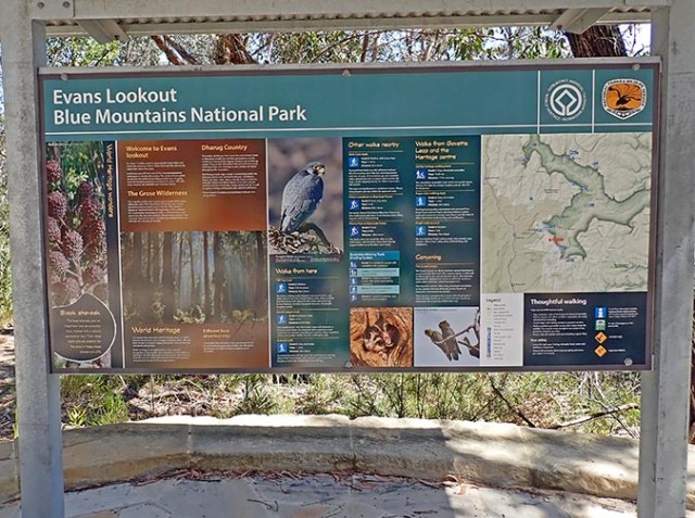 Evans Lookout has a view of Grose Valley. This valley helped start the conservation movement in New South Wales and was instrumental in the early formation of Blue Mountains National Park when a group of bushwalkers pooled their money to buy out a logging lease and save the forest in 1932. Historically the area was home to Aboriginal people. Their cave drawings, carvings, and stone tools can still be found throughout the Blue Mountains.
