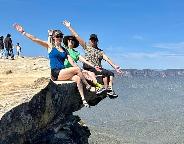 Lincoln’s Rock is a favorite place for tourists and locals alike for living on the edge – or at least taking photos perched on the edge of a rock hanging over a drop-off on a hillside. It’s so popular that you now have to pay to park in the nearby lot, or carpark as Australians call both parking lots and parking garages. It’s a short hike from the parking area to the semi-flat rocks where people enjoy posing on the edge. If there’s very many people there you might have to wait your turn for the best spot.