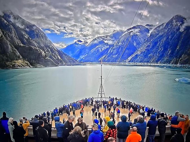 When cruising through scenic areas like glaciers on Alaska cruises Holland America allows passengers out on the open front bow. Additional smaller open areas on some of the decks above will usually be open for scenic sailing as well. Zaandam had just one open bow area above the main bow, accessed from the port side of deck 6. This area was open throughout the cruise rather than only when the main bow was open.