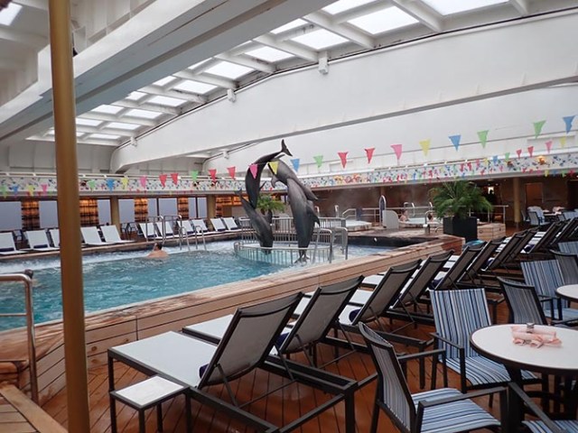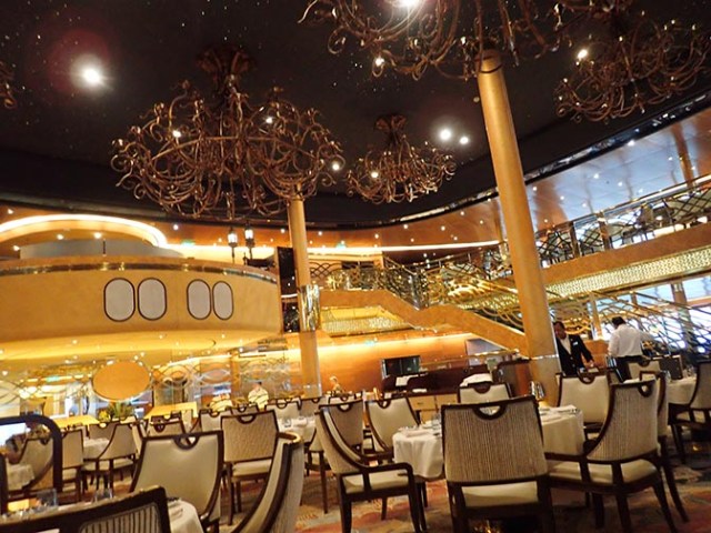 Ship’s décor is a music theme and they do have several venues onboard for listening to live music as well as a variety of different instruments on display in public areas. Other entertainment includes shows, movies, lectures, and games. Food included in the cruise price is found in the dining room, buffet or poolside grill and taco bar. For an extra charge steak and seafood is available at the ship’s upscale restaurant, the Pinnacle Grill or Italian food at Canaletto. There are of course a number of bars to be found around the ship as well, and coffee bars in the Explorations Cafe on deck 5 and in the Crow’s Nest on deck 9.