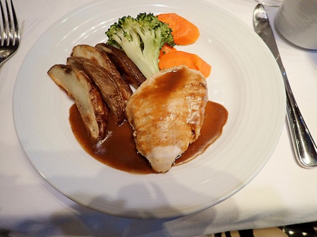 As with most ships the two main eateries are the dining room and the buffet. The main dining room was split into two sides with different decor and separate lines. One side was for people with reservations and the other for those without if you were on the any time dining. Set time dining was on a different level, though one night we were taken to a table there rather than in the anytime area. Another time we were seated on the reservation side of the anytime dining room even though we didn’t have a reservation so they were flexible when tables were available in different areas. Suite guests had their own dining room called the Coastal Kitchen.
