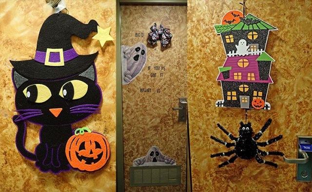 A lot of people put Halloween decorations on their cabin doors. We had a witch bird that we bought at Target at one of the port stops in Hawaii earlier in the cruise. It was pretty small compared to what some of the other people had on their doors.