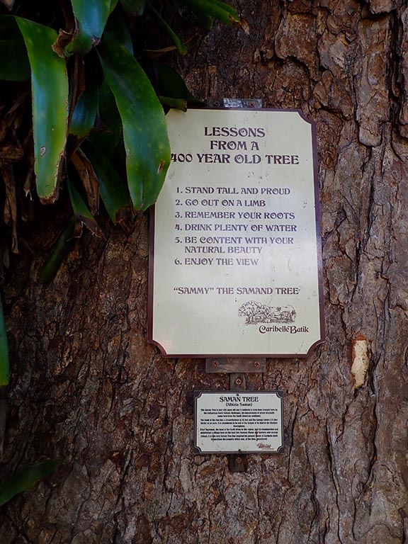sign at a 400-year-old tree at Romney Manor in St Kitts