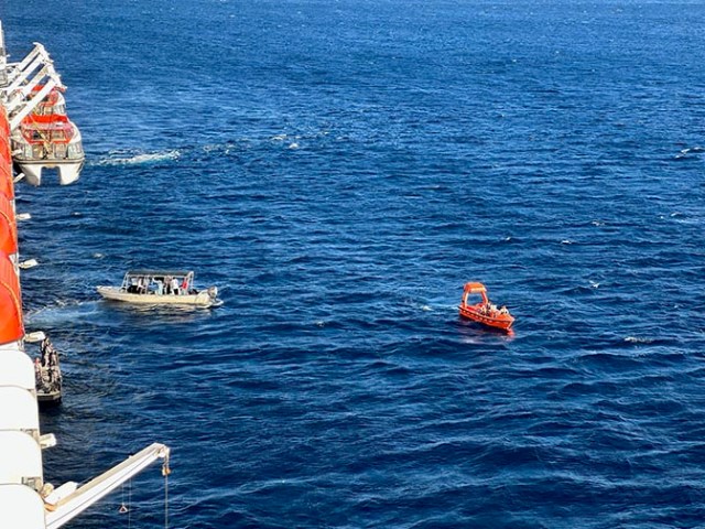When we arrived at the anchorage near Kiritimati the ship dropped a tender and the small rescue boat. The small boat tested the waters for a route to the island and the tender followed along somewhat. They set out from the ship several times, always returning before actually landing on the island. Eventually they decided they would be unable to get the tenders into the port and the ship left. The sea was too rough and likelihood of a tender running aground was too high. Probably especially with our seemingly neophyte tender crew judging by the difficulties they had launching, docking, and even tying them to the dock in Hawaii, though it’s possible a more talented tender crew may not have been up to the task there either. A boat of representatives from the island made it from shore to our ship, but their boat probably weighed considerably less than a tender. Or they were just far more experienced in safely getting in and out of their island. Likely both.