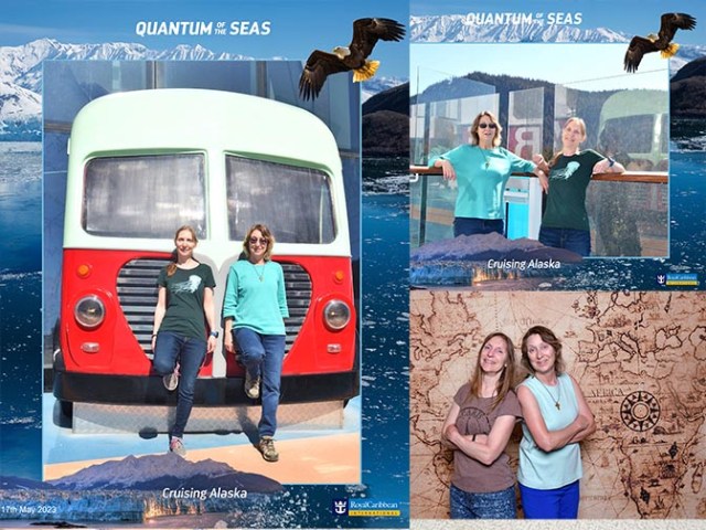 As far as posing for pictures goes, cruising with my sisters is quite the opposite of cruising with my husband. When it’s just the two of us we avoid photographers like the plague, but when cruising with my sisters we always buy a photo package. With most lines the best deal is generally in whatever is the biggest package that they offer. Royal Caribbean’s biggest package is 100 photos. Purchased online pre-cruise it was less than half the price buying it onboard would have been on this cruise. This is a digital package, not printed photos. Newer ships like Quantum of the Seas (which is nowhere near Royal’s newest having launched in 2014) don’t even display printed photos like the older ships did. The walls of racks full of photos that mostly ended up in the garbage since nobody bought them have been replaced by a room full of computer monitors where you use your key card to bring up pictures of people in your cabin. The package covers anyone in that room, but if you are traveling with people in other cabins they will also be included in the photos for your cabin as long as at least one person from your cabin is in the photo and that is the cabin number that you give the photographer when they ask for it. Which was nice since my two nieces were in a different cabin from my mom, sisters, and I, but are still included in some of our photos.