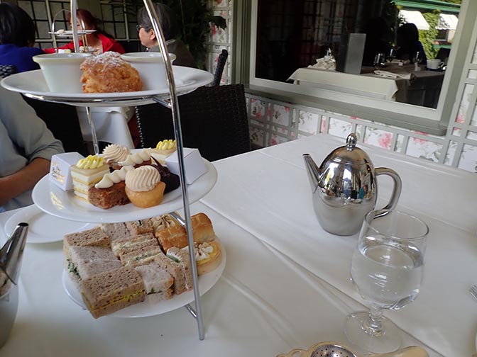 tea stand with gluten free items for two people at Butchart Gardens afternoon tea