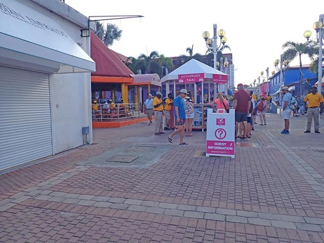 The shopping area has some of the usual shops found in nearly every port as well as some local shops, bars and eateries. There is a taxi stand and a lot of people with signs offering island tours or rides out to a beach. There was also a live local band playing for tips.