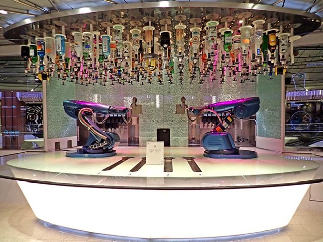 Like all cruise ships, Quantum has lots of bars. It’s always fun to watch the robots at Royal’s Bionic Bar even if you don’t buy anything. The solarium bar is pretty handy for people lounging there. (As are all the other bars for people in other areas of the ship.)