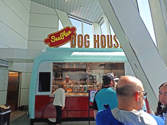 Besides the dining room and buffet, Quantum had lots of other complimentary food options. There were some pay-extra places too, but with so many free options that really wasn’t a necessity unless someone wanted to go to one of the specialty places. Free options included pizza, a couple cafes, hot dogs, the solarium bistro, and sometimes a pop-up ice cream stand or hamburger grill on the pool deck.