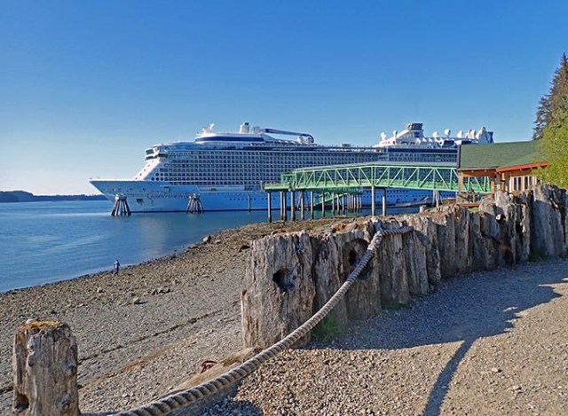Dawes Glacier wasn’t the only thing we missed on this cruise. It didn’t make it to port in Victoria either. I’d never heard of a ship not going to Victoria before. That’s their foreign port requirement for complying with the Jones Act for ships sailing to Alaska from Seattle. Granted there were waves splashing over top of the pilot boat when he came aboard, but he managed to make it onto the ship. Right at the time people were gathering at the meeting places for excursions they announced that the captain and pilot had decided it wasn’t safe to dock- just as we sailed past Victoria for the second time looking at a Norwegian ship already docked there. Perhaps this ship is just too big for Alaska cruises.