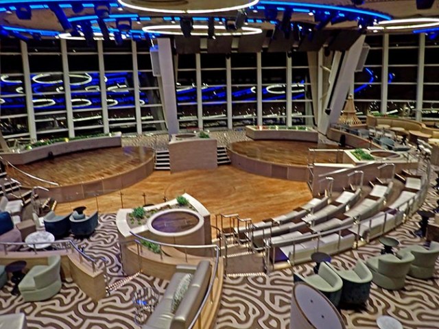 The other unique venue on Quantum class ships is two70, so named for the 270° view from its floor to ceiling windows. The ship’s featured show is held there and the space is used for other things as well. When not in use it’s a good place to get a view from the back of the ship in the daytime.