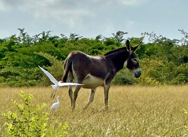 A herd of feral donkeys grazed in a field near the stadium so we stopped to take some photos of them. There is a donkey sanctuary on the island, but you have to pay to go in there and these donkeys were free to see. There were quite a few egrets hanging out with them. Probably cattle egrets since those like to hang out with livestock and keep them vermin free.